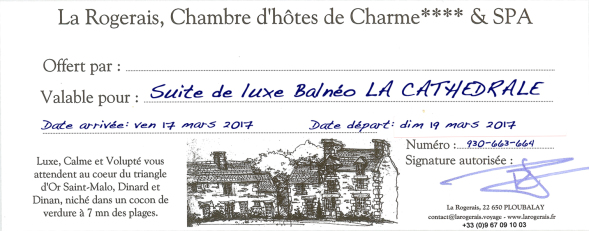 CHEQUE CADEAU SEJOUR LIBRE de date, durée, chambre