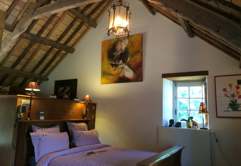 La chambre parfaite pour écrire et lire, très intimiste, vue sur la campagne, sérénité absolue (env. 24 m2, 1er étage) avec un lit King Size. Description complète