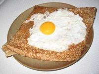 centre de l'un des deux, du jambon et de l'emmental râpé, puis casser un oeuf au centre de la galette.